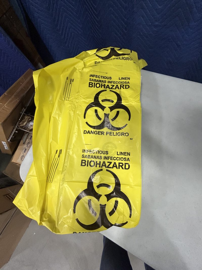 Item 14- Sac en plastique jaune pour déchets a risque biologique ( infectieux ) Biohazard