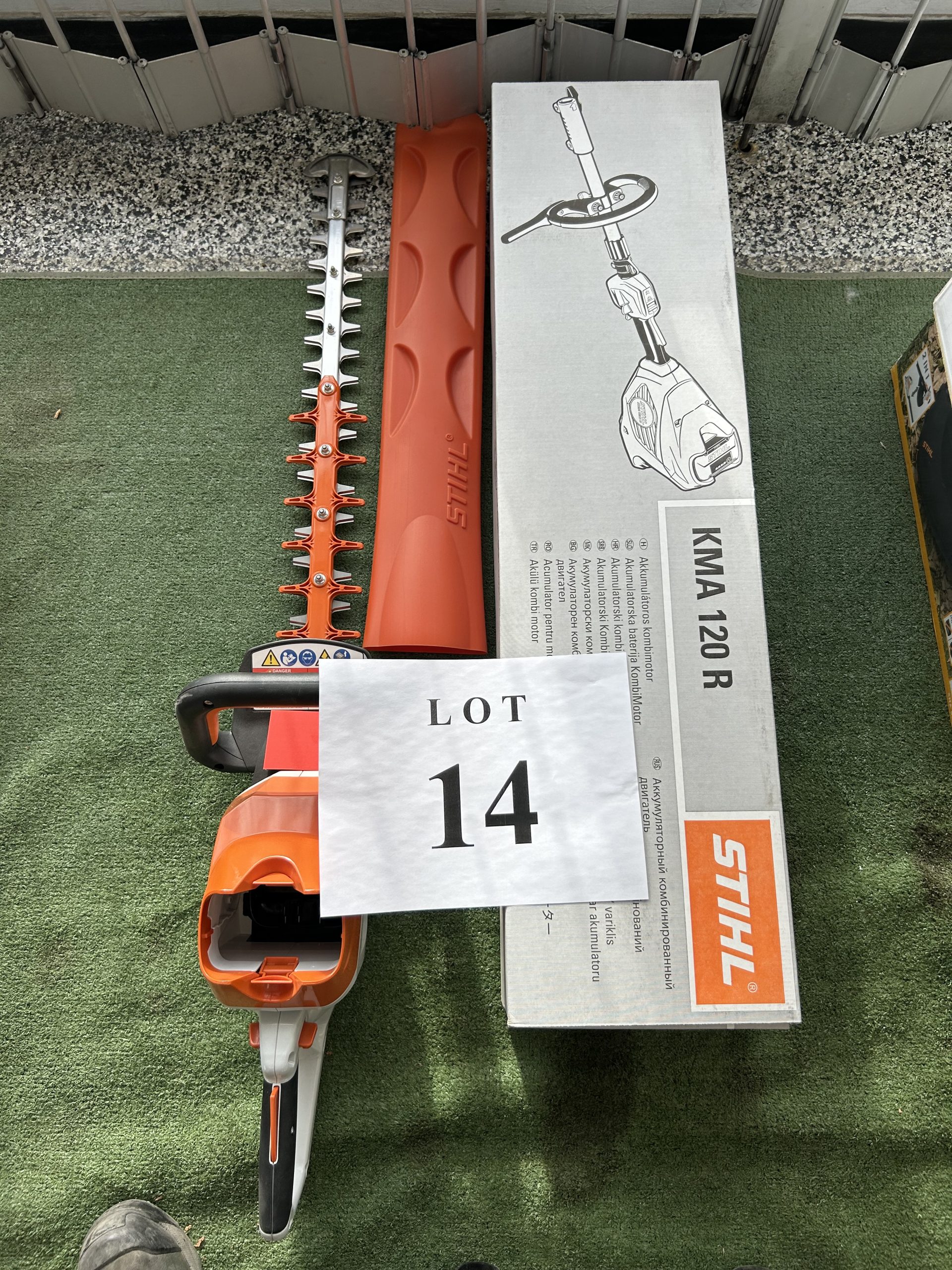 Item Lot 14- Ensemble a batterie STihl , moteur KMA 120R avec taille haie sans batterie et chargeur