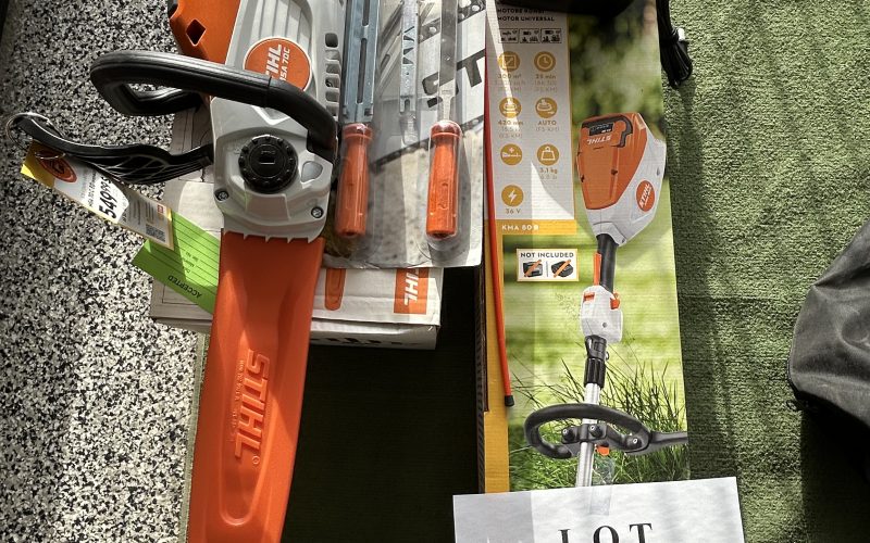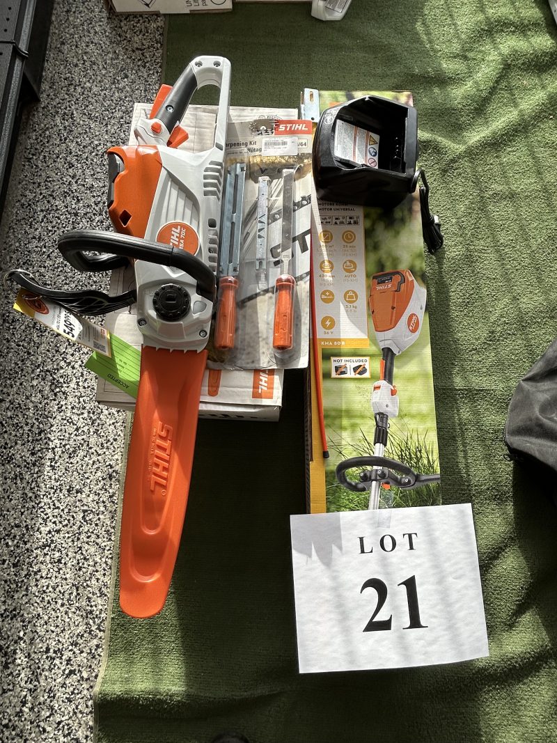Item Lot 21- Ensemble a batterie STihl , moteur KMA80R , scie a chaine MSA 70C avec batterie et chargeur