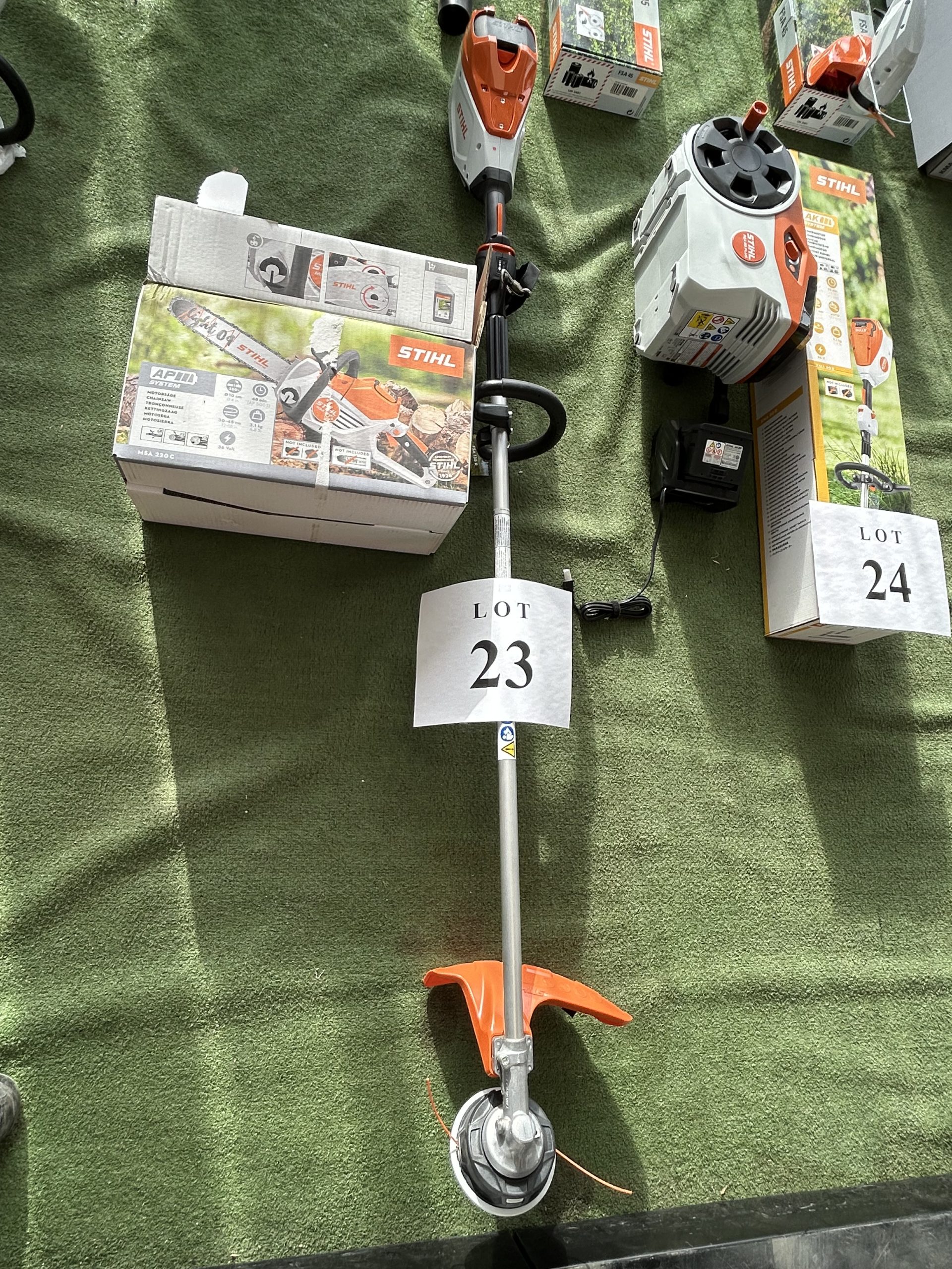 Item Lot 23- Scie a chaine a batterie Stihl MSA220C avec coupe bordure a batterie Stihl FSA 135R , sans batterie et chargeur