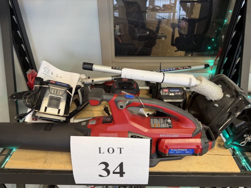 Item lot 34- Ensemble Toro , souffleur a feuille , rotoculteur , coupe branche et bordure
