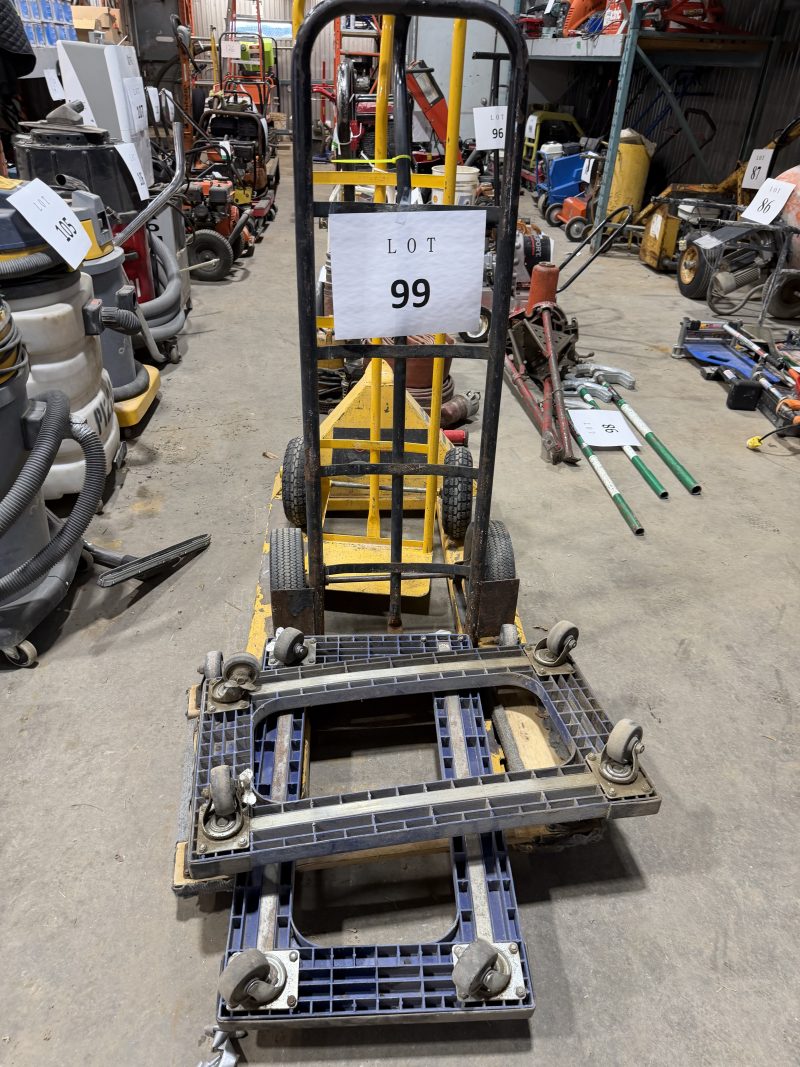 Item Lot 99- Transpalette , (2) diables , 3 dolly